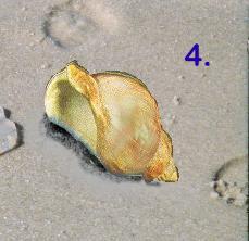 This shell is easily recognizable by its deep spiral channels. Its size varies from three to seven inches. It is pear-shaped with five to six whorls, each with a deep channel at the spiral seam. Outside it is creamy-gray while inside its colors vary from yellow to an orange-brown. It ranges from Cape Cod to northern Florida. Its string of egg capsules looks very similar to the ones of the knobbed whelk. The knobbed whelk is the largest whelk (up to nine inches) with distinctive knobs on the whorls. To tell the egg capsules apart, you must look at the disks very carefully. The capsules of the knobbed whelk have flat edges while the channel whelk’s capsules have sharp edges. Since the picture of the capsules is small, you are right if you said either Knobbed or Channeled.